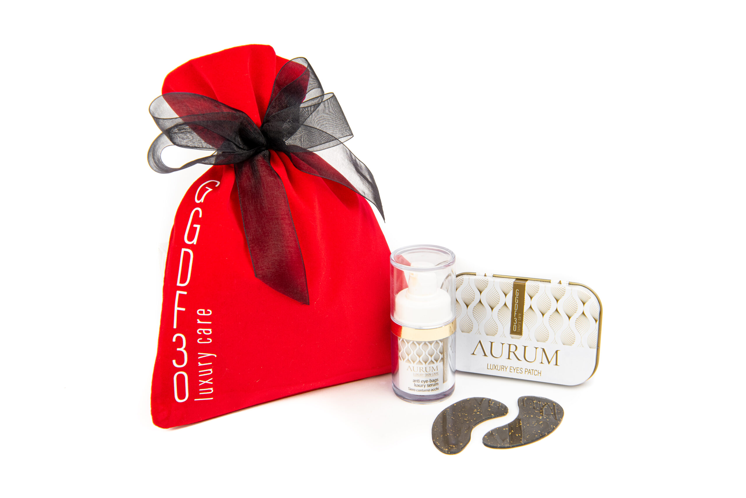 La box AURUM comprende Siero Contorno Occhi Anti Eye-Bags Luxury Serum e i Patches AURUM Luxury Eyes-Patch
